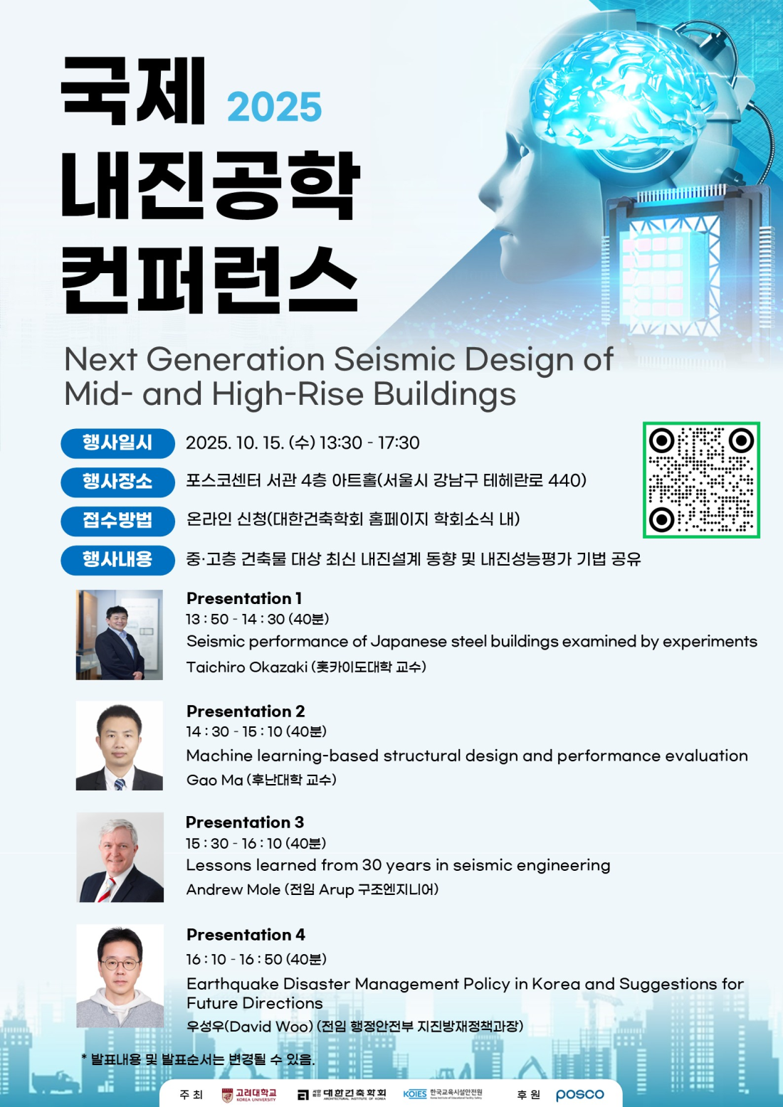 대한건축학회에서 고려대학교, 한국교육시설안전원과 공동으로 '2025 국제 내진공학 컨퍼런스'를 개최하오니 관심있는 회원님들의 많은 참여 부탁드립니다.