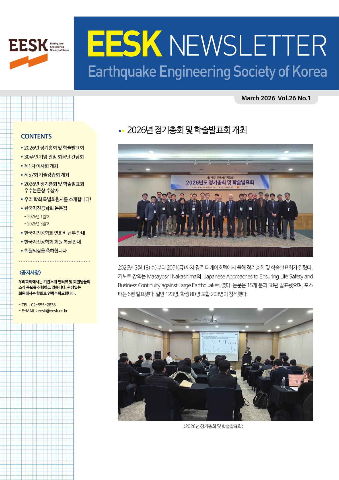 한국지진공학회 뉴스레터가 발간되었습니다.