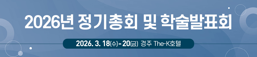 우리 학회에서는 "2026년 정기총회 및 학술발표회"를 2026년 3월 18일(수)~20일(금) 경주 The-K호텔에서 개최하고자 합니다. 회원 여러분의 많은 관심과 참여를 부탁드립니다.